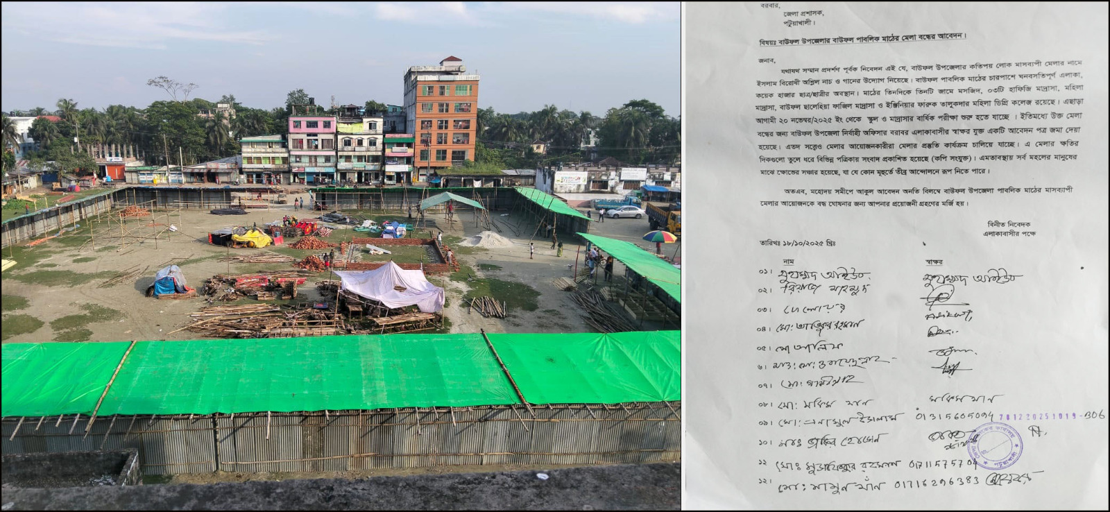এদিকে পাবলিক মাঠে এই মেলা বন্ধের দাবিতে স্থানীয় ব্যক্তিবর্গ ও মুসুল্লিরা রবিবার পটুয়াখালী জেলা প্রশাসকের কাছে একটি আবেদন জমা দিয়েছেন। এর আগেও উপজেলা নির্বাহী কর্মকর্তার কাছে একই বিষয়ে আবেদন করা হয়েছিল।