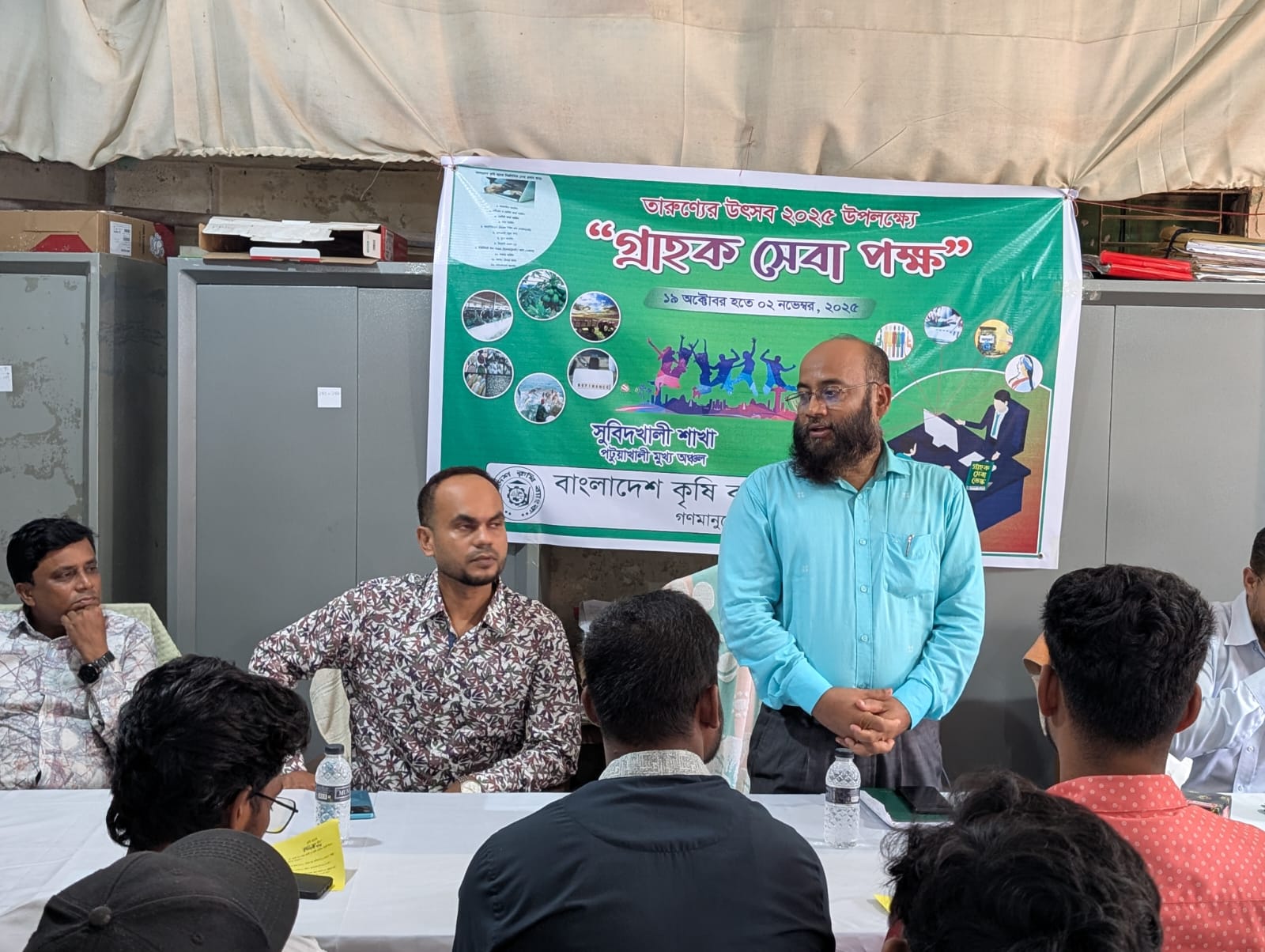 বুধবার (২২ অক্টোবর) সকাল ১১ ঘটিকায় সুবিদখালী কৃষি ব্যাংক কার্যালয়ে শাখা ব্যবস্থাপক মো. শাহজাদা মহিউদ্দিনের সভাপতিত্বে উক্ত সভায় উপস্থিত ছিলেন, কৃষি ব্যাংক পটুয়াখালী এর অঞ্চল প্রধান মো. আ. আজিজ, সহকারী মহাব্যবস্থাপক মো. আজিজুর রহমান এবং সুবিদখালী সরকারী কলেজের সহকারী অধ্যাপক মো. মনিরুজ্জামানসহ স্থানীয় গণ্যমান্য ব্যক্তি, তরুনসমাজসহ বিভিন্ন স্তরের গ্রাহক।