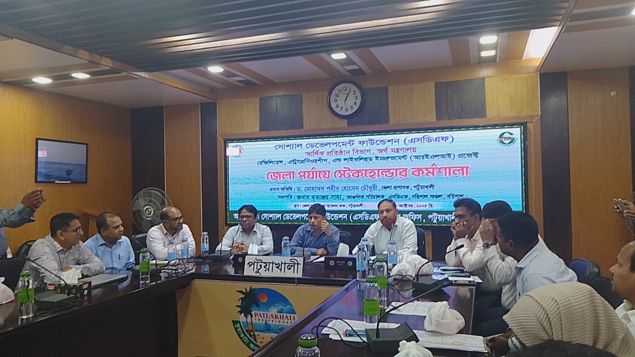 অর্থ মন্ত্রণালয়ের আর্থিক প্রতিষ্ঠান বিভাগের শ্বায়ত্বশাসিত প্রতিষ্ঠান সোশ্যাল ডেভেলপমেন্ট ফাউন্ডেশন (এসডিএফ) এর আয়োজনে রেজিলিয়েন্স এন্ট্রাপ্রেনিওরশীপ এন্ড লাইভলিহুড ইমপ্রুভমেন্ট (আরইএলআই) প্রজেক্টের আওতায় পটুয়াখালীতে ‘জেলা স্টেকহোল্ডার কর্মশালা’ অনুষ্ঠিত হয়েছে।