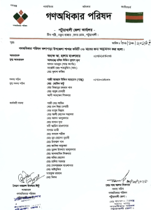 এছাড়া গাজী আব্বাস উদ্দিন বাচ্চুকে সদস্য সচিব, মো. মমিন মিন্টু, মিজানুর রহমান খান, বাবুল বেপারী, আলী আহমেদ শিকদারকে যুগ্ম সদস্য সচিব করা হয়েছে। ৩২ জনকে কার্যকরী সদস্য করে ৪২ সদস্য বিশিষ্ট এই আহ্বায়ক কমিটি গঠণ করা হয়েছে। আগামি ছয় মাসের জন্য এই আহ্বায়ক কমিটির অনুমোদন করা হয়েছে। গণঅধিকার পরিষদের পটুয়াখালী জেলা আহ্বায়ক সৈয়দ নজরুল ইসলাম লিটু ও সদস্য সচিব শাহ আলম সিকদার এ কমিটি অনুমোদন করেছেন। এছাড়া কলাপাড়া পৌরশাখার আংশিক কমিটি অনুমোদন করা হয়েছে। যেখানে মো: বনি আমিনকে আহ্বায়ক ও রবিউল আউয়াল অন্তরকে সদস্য সচিব করা হয়েছে। আজ ৩০ অক্টোবর এ কমিটির অনুমোদন দেওয়া হয়েছে।