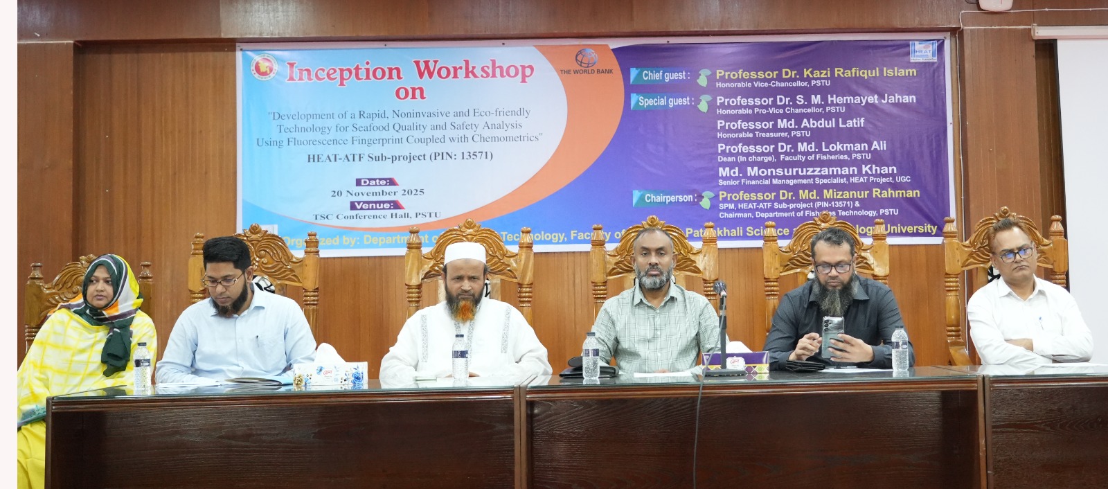পটুয়াখালী বিজ্ঞান ও প্রযুক্তি বিশ্ববিদ্যালয়ের ফিশারিজ অনুষদের ফিশারিজ টেকনোলজি বিভাগের উদ্যোগে “Development of Noninvasive and Eco-friendly Technology for Seafood Quality and Safety: Fluorescence Fingerprint Coupled Chemometrics” শীর্ষক সেমিনার অনুষ্ঠিত হয়েছে।
