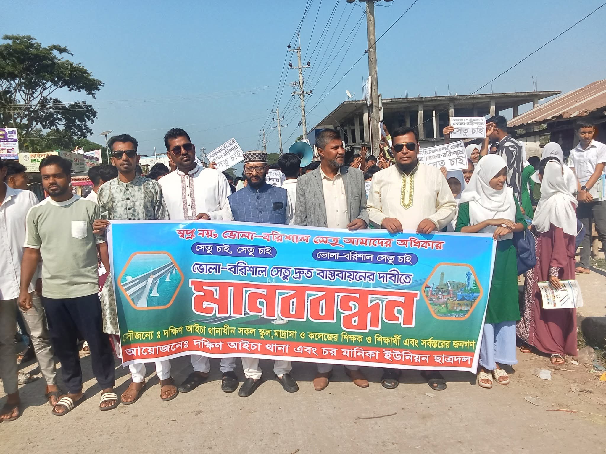 চরফ্যাশন (ভোলা) প্রতিনিধি: ভোলা–বরিশাল সেতু নির্মাণের দাবিতে ভোলার চরফ্যাশন উপজেলার দক্ষিণ আইচা বাজার সদর রোডে মানববন্ধন অনুষ্ঠিত হয়েছে।