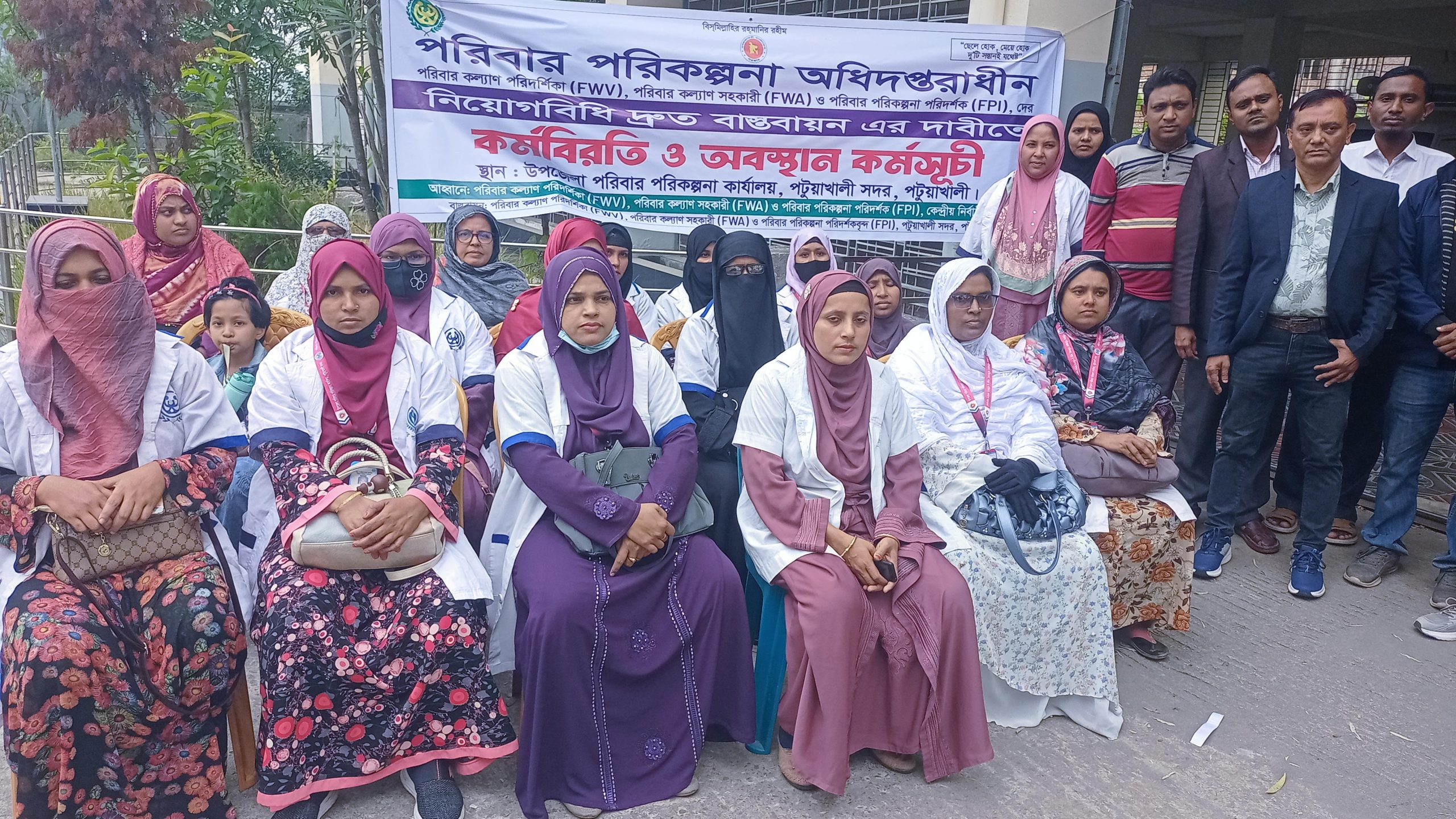 পরিবার পরিকল্পনা অধিদপ্তরাধীন পরিবার কল্যান পরিদর্শিকা, পরিবার কল্যান সহকারী ও পরিবার পরিকল্পনা পরিদর্শকদের প্রস্তাবিত নিয়োগ বিধি দ্রুত বাস্তবায়নের দাবীতে কেন্দ্র ঘোষিত কর্মসূচীর অংশ হিসেবে পটুয়াখালীতেও মাঠ কর্মীদের কর্মবিরতি ও অবস্থান কর্মসূচী পালিত।