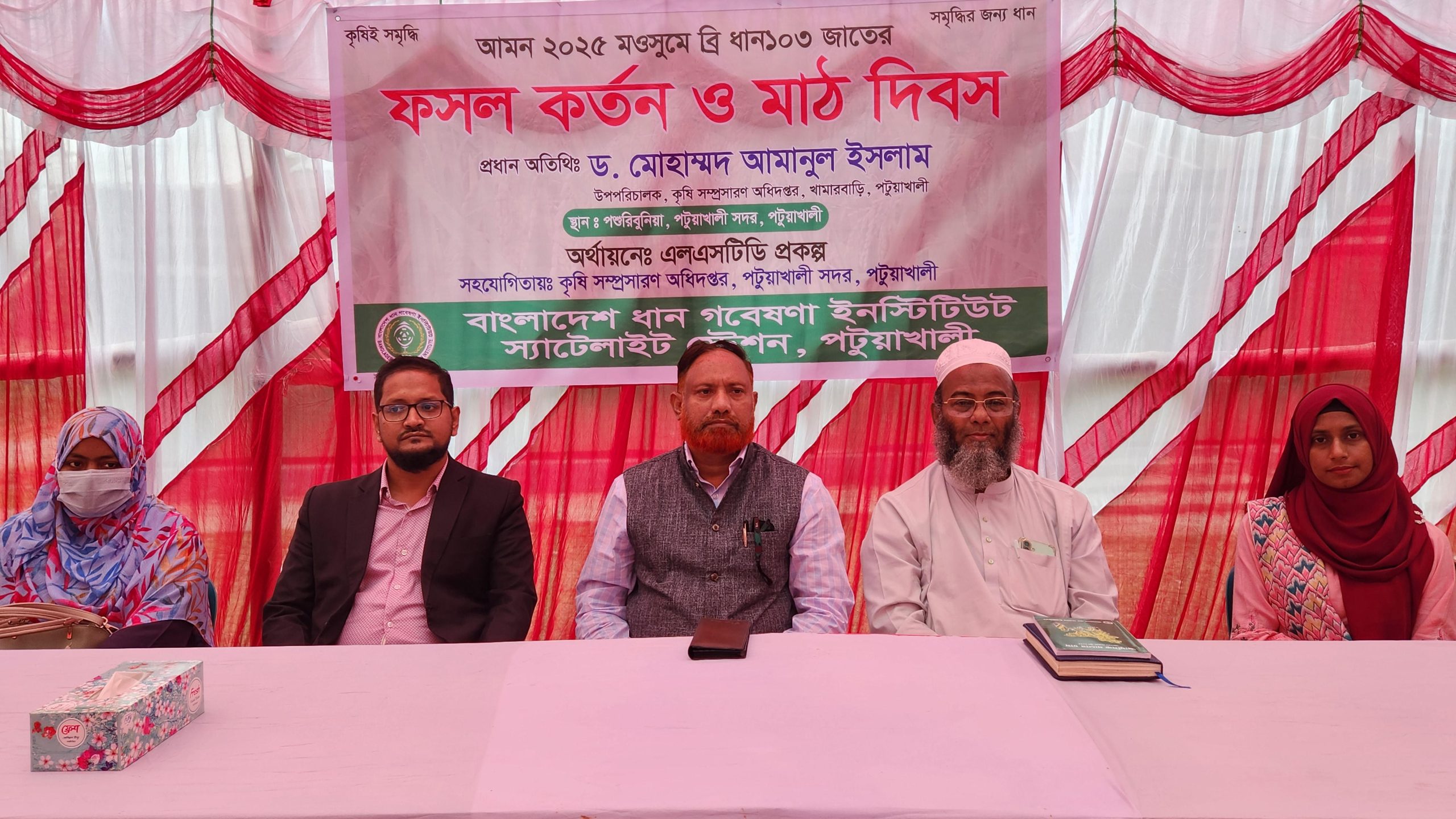 ‘কৃষিই সমৃদ্ধি, সমৃদ্ধির জন্য ধান’ স্লোগানকে সামনে রেখে পটুয়াখালীতে আমন মওসুমে আধুনিক ও উচ্চফলনশীল ধানের জাত জনপ্রিয়করণের লক্ষ্যে ব্রি ধান১০৩ জাতের ফসল কর্তন ও মাঠ দিবস অনুষ্ঠিত হয়েছে।