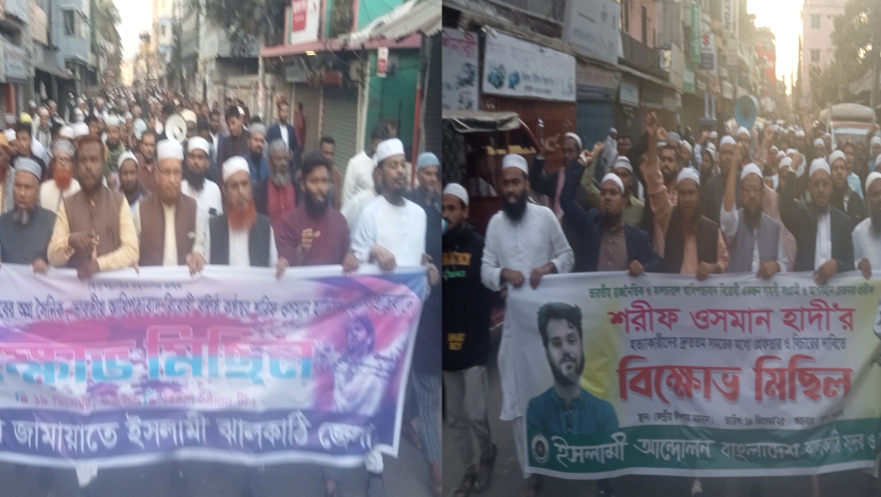 ঝালকাঠি প্রতিনিধি: ইনকিলাব মঞ্চের প্রতিষ্ঠাতা আহ্বায়ক ও মুখপাত্র শরীফ ওসমান বিন হাদীর মৃত্যুতে পৃথক কমর্সূচী পালন করেছে বাংলাদেশ জামায়াতে ইসলামী ও ইসলামী আন্দোলন বাংলাদেশ ঝালকাঠি জেলা শাখা। বিকেল সোয়া ৪টার (আছরের নামাজের পরে) এ কর্মসূচী পালন করে। বিকেল ৪টা থেকে শহরের ফায়ারসার্ভিস মোড়ে জামায়াতের দলিয় নেতাকর্মীরা জড়ো হতে থাকে। মিছিল পুর্ব সমাবেশে বক্তৃতা করেন জেলা জামায়াতের নায়েবে আমীর অ্যাডভোকেট বিএম আমিনুল ইসলাম, সেক্রেটারী অধ্যক্ষ ফরিদুল হক, সহসেক্রেটারী মাওলানা আব্দুল হাই, জেলা শ্রমিককল্যাণ ফেডারেশনের সভাপতি মাওলানা মিরাজুল ইসলাম, জেলা ছাত্রশিবিরের সেক্রেটারী মো. সিদ্দিকুর রহমান।