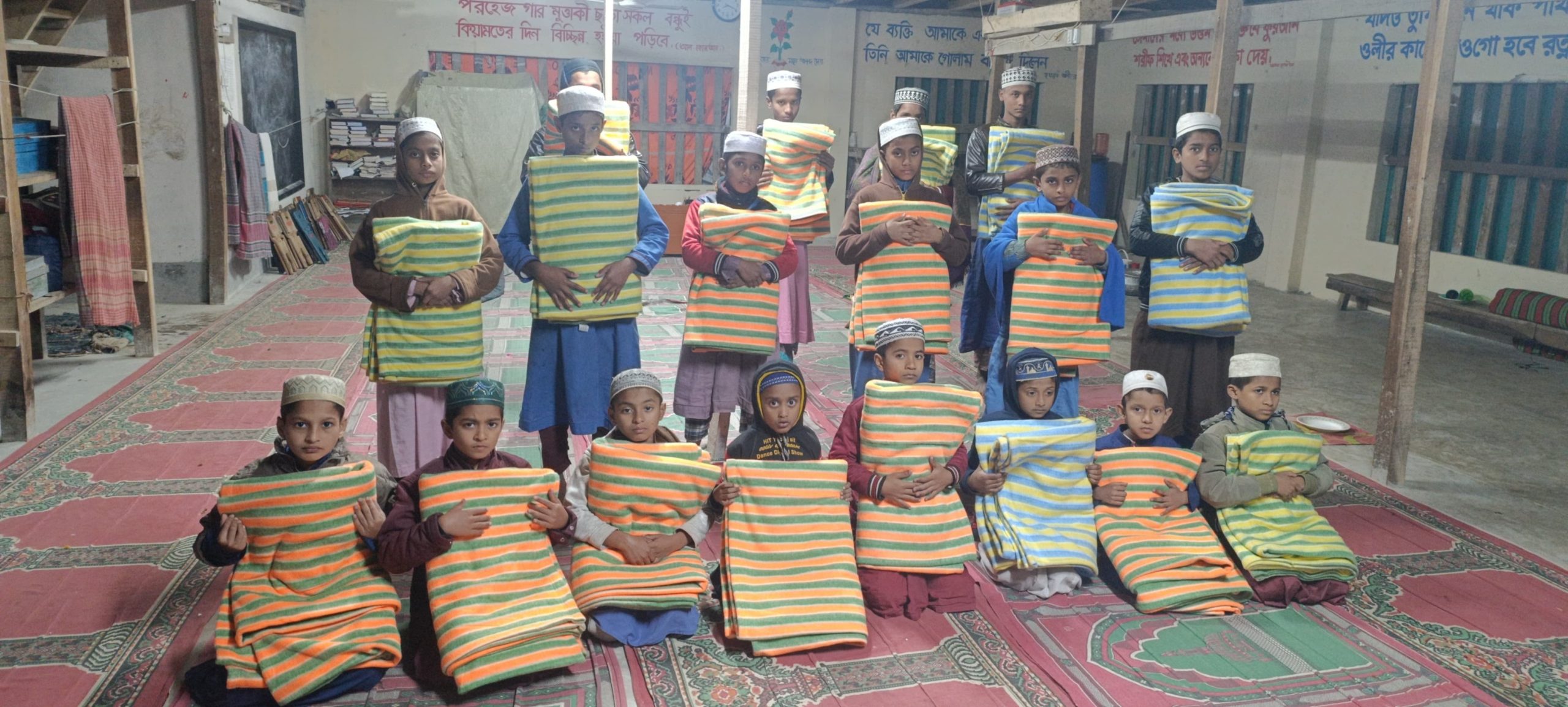উপস্থিত হয়ে তিনি শিক্ষার্থীদের হাতে এই শীতবস্ত্র তুলে দেন।