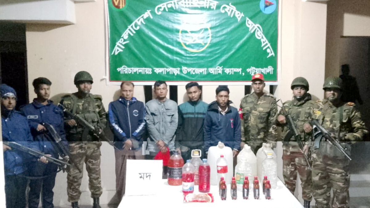 কলাপাড়া প্রতিনিধি: কলাপাড়ায় পায়রা বিদ্যুৎ আর্মিক্যাম্পের সদস্যদের পরিচালিত যৌথ অভিযানে ১৯৬০ লিটার বাংলা মদসহ চার রাখাইন যুবককে গ্রেফতার করা হয়েছে। এসময় ১৯০০ লিটার বাংলা মদ নষ্ট করা হয় এবং ৬০ লিটার মদ জব্দ করা হয়।