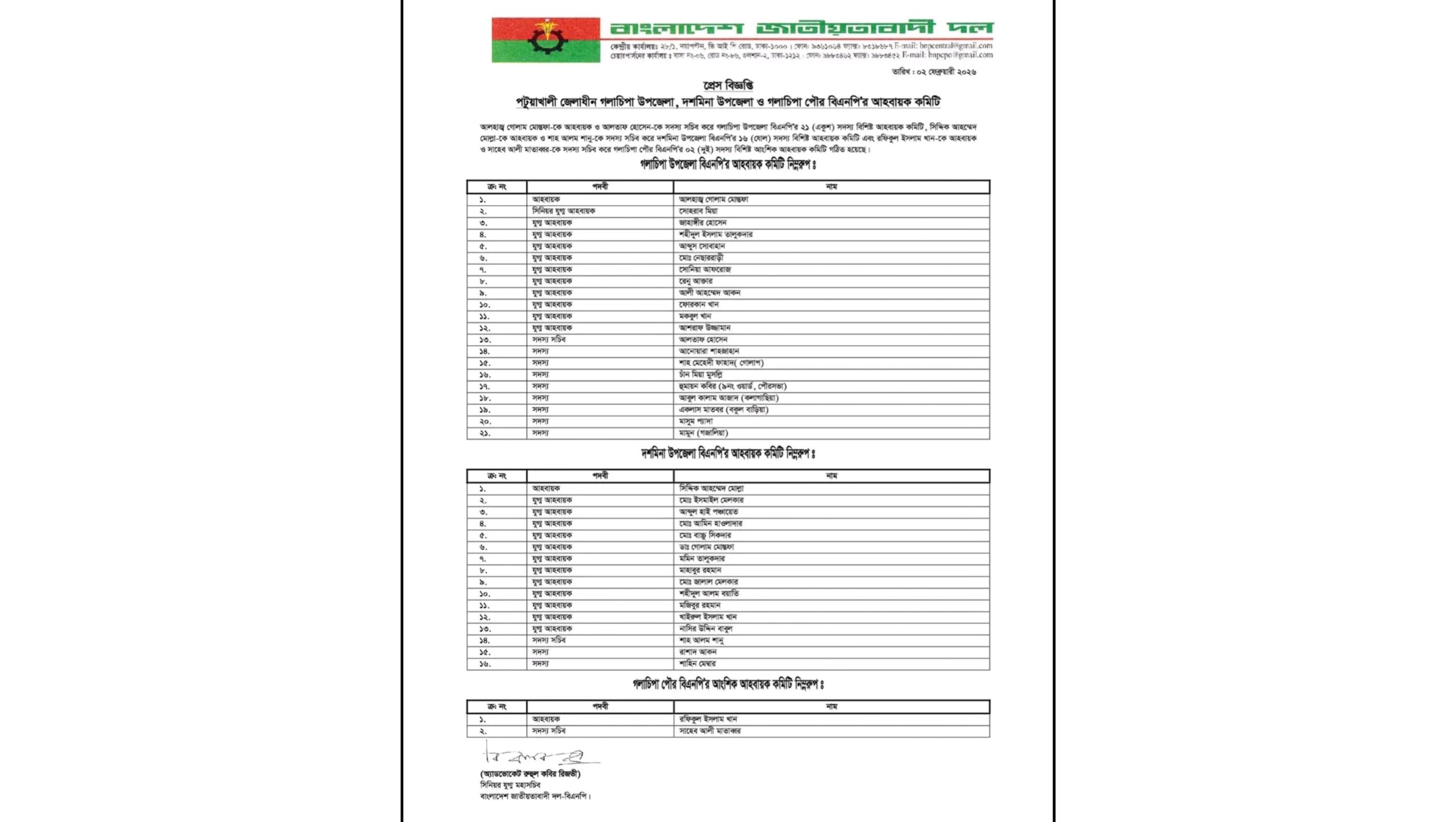 পটুয়াখালীর দশমিনা-গলাচিপা উপজেলা ও গলাচিপা পৌর বিএনপি’র আহবায়ক কমিটি গঠন করা হয়েছে।