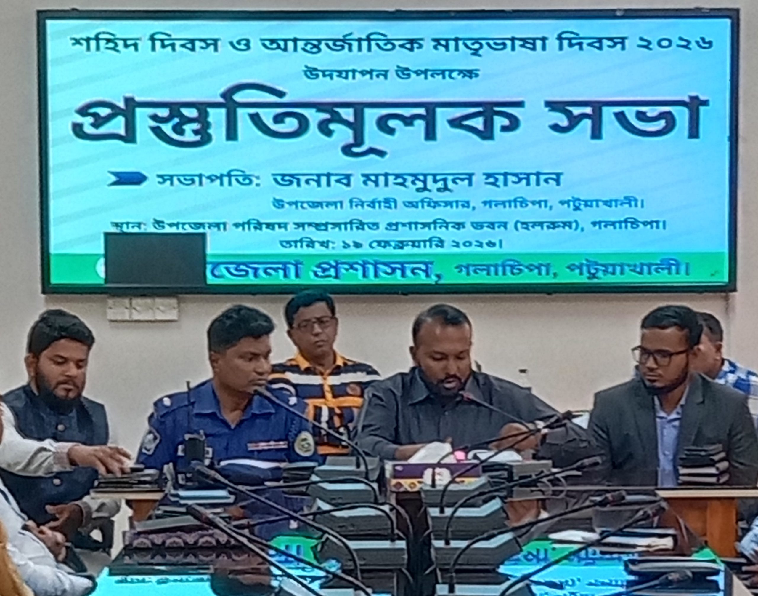 গলাচিপা প্রতিনিধি: আসন্ন ২১ ফেব্রুয়ারি ২০২৬-শহীদ দিবস আন্তর্জাতিক মাতৃভাষা দিবস-যথাযথ- মর্যাদার নানা কর্মসূচীর আলোকে- গলাচিপা উপজেলা প্রশাসনের আয়োজনে বৃহস্পতিবার বেলা-৩টায় প্রশাসনের দরবার হলে স্থানীয় পর্যায়ে- সরকারী কর্মকতা রাজনেতিক নেতৃবিন্দ, শিক্ষক- সুধি সাংবাদিক ও সাংস্কৃতিক প্রতিনিধিদের সমন্বয়ে উপজেলার সুযোগ্য নির্বাহী অফিসার মাহমুদুল হাসান এ সভাপতিতে নানা কর্মসূচি গ্রহণ করা হয়েছে।