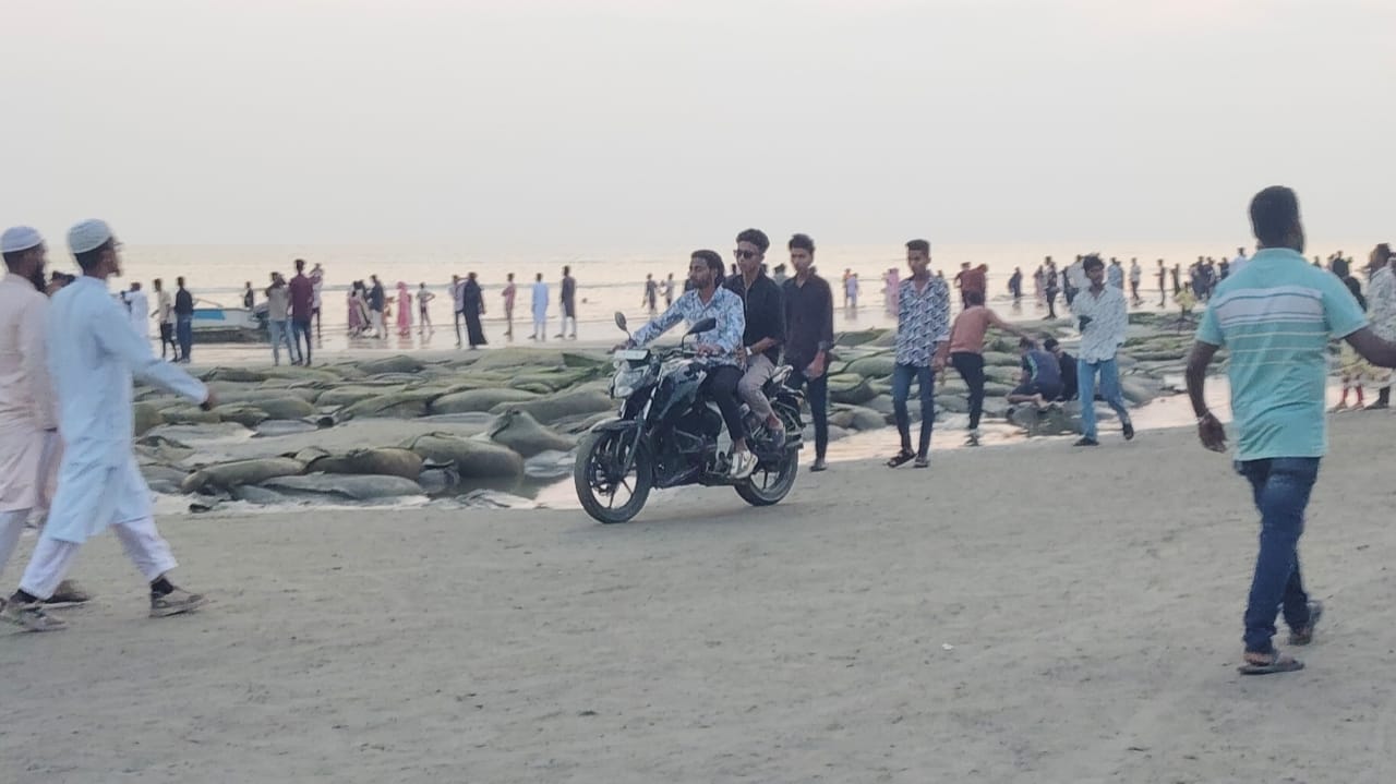 সরেজমিনে দেখা গেছে, সৈকতের বিভিন্ন পয়েন্টে—এমনকি ট্যুরিস্ট পুলিশ বক্সের সামনেও—নিয়ম ভেঙে অবাধে চলাচল করছে মোটরসাইকেল। অনেক চালক পর্যটকদের ঘোরানোর জন্য দরদাম করছেন, কেউ ঘণ্টাভিত্তিক চুক্তিতে বাইক ভাড়া দিচ্ছেন, আবার কেউ বেপরোয়াভাবে দাপিয়ে বেড়াচ্ছেন সৈকতজুড়ে।