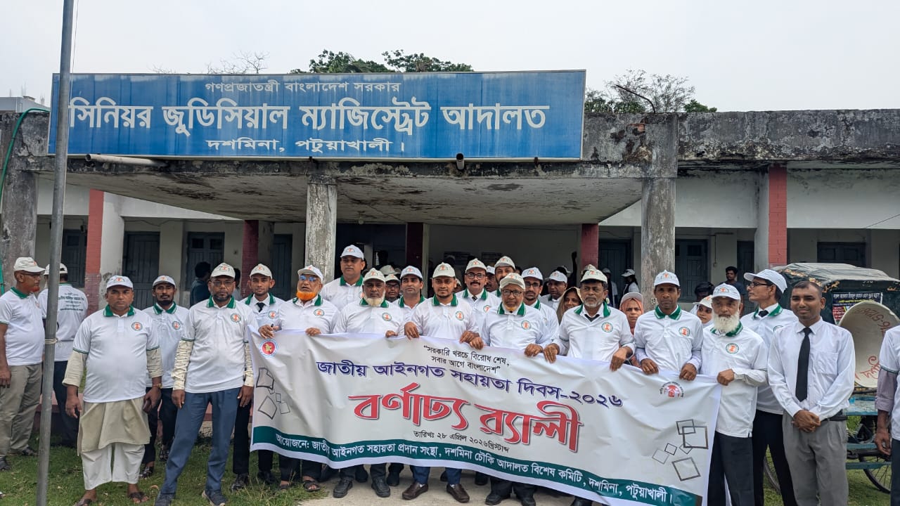 মঙ্গলবার (২৮ এপ্রিল) সকাল ১১ টায় জাতীয় আইনগত সহায়তা প্রদান সংস্থা, দশমিনা চৌকি আদালত বিশেষ কমিটির আয়োজনে দিবসটি পালন করা হয়।