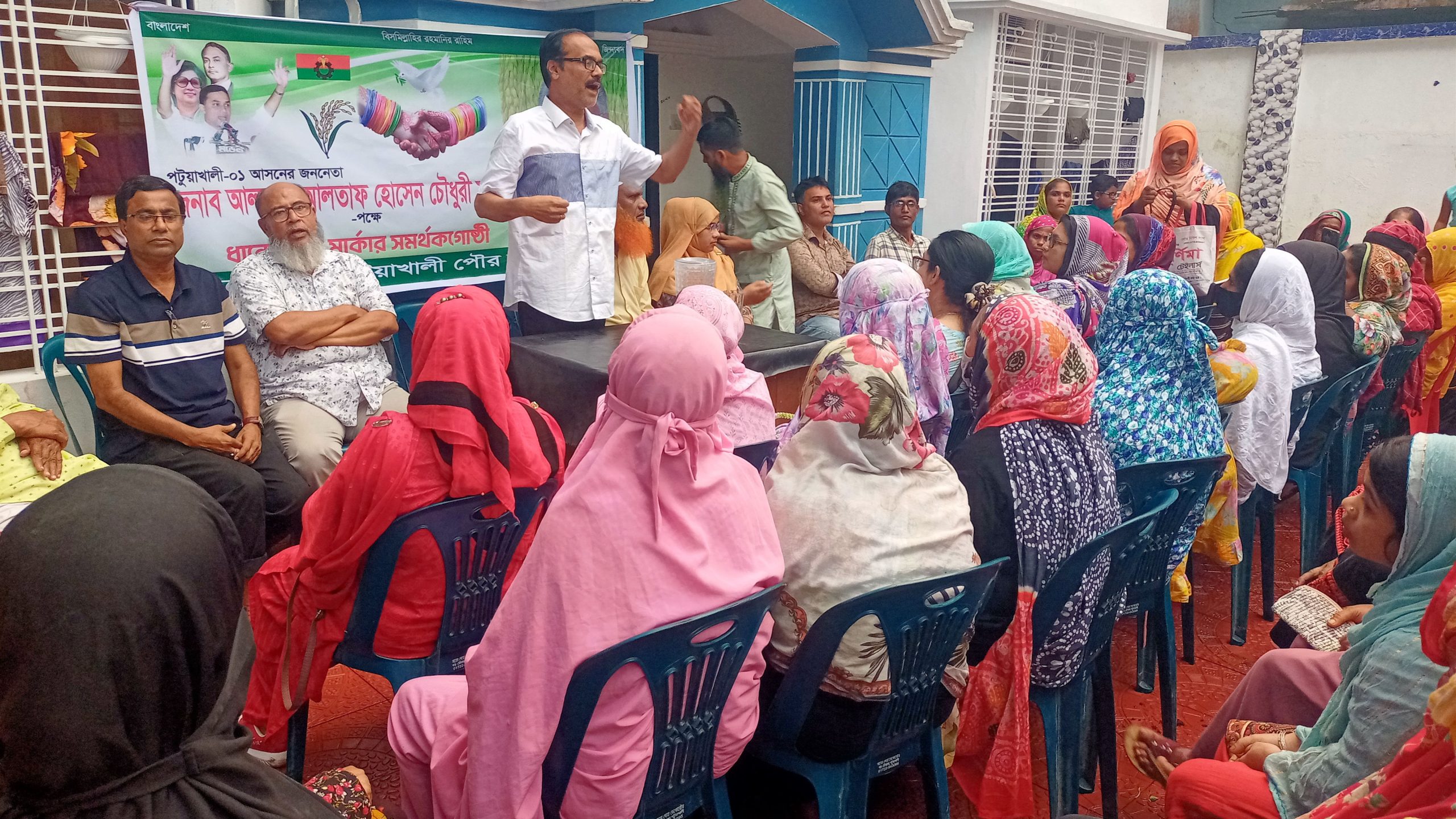তিনি বৃহষ্পতিবার বিকাল ৪ টায় পটুয়াখালী পৌরসভার ৯ নং ওয়ার্ডে মিরাজ ভবনের সামনে পৌর সুশিল সমাজের ব্যানারে আসন্ন জাতীয় সংসদ নির্বাচনে পটুয়াখালী-১ আসনের সম্ভাব্য প্রার্থী কেন্দ্রীয় বিএনপির ভাইস চেয়ারম্যান সাবেক স্বরাস্ট্র মন্ত্রী আলহাজ্ব আলতাফ হোসেন চৌধুরীর সমর্থনে আয়োজিত উঠান বৈঠকে এ কথা বলেন। তিনি আসন্ন জাতীয় সংসদ নির্বাচনে ধানের শীষ প্রতীকে ভোট দেয়ার জন্য মা- বোনদেরসহ সকল শ্রেনী পেশার সাধারনের প্রতি আহবান জানান।