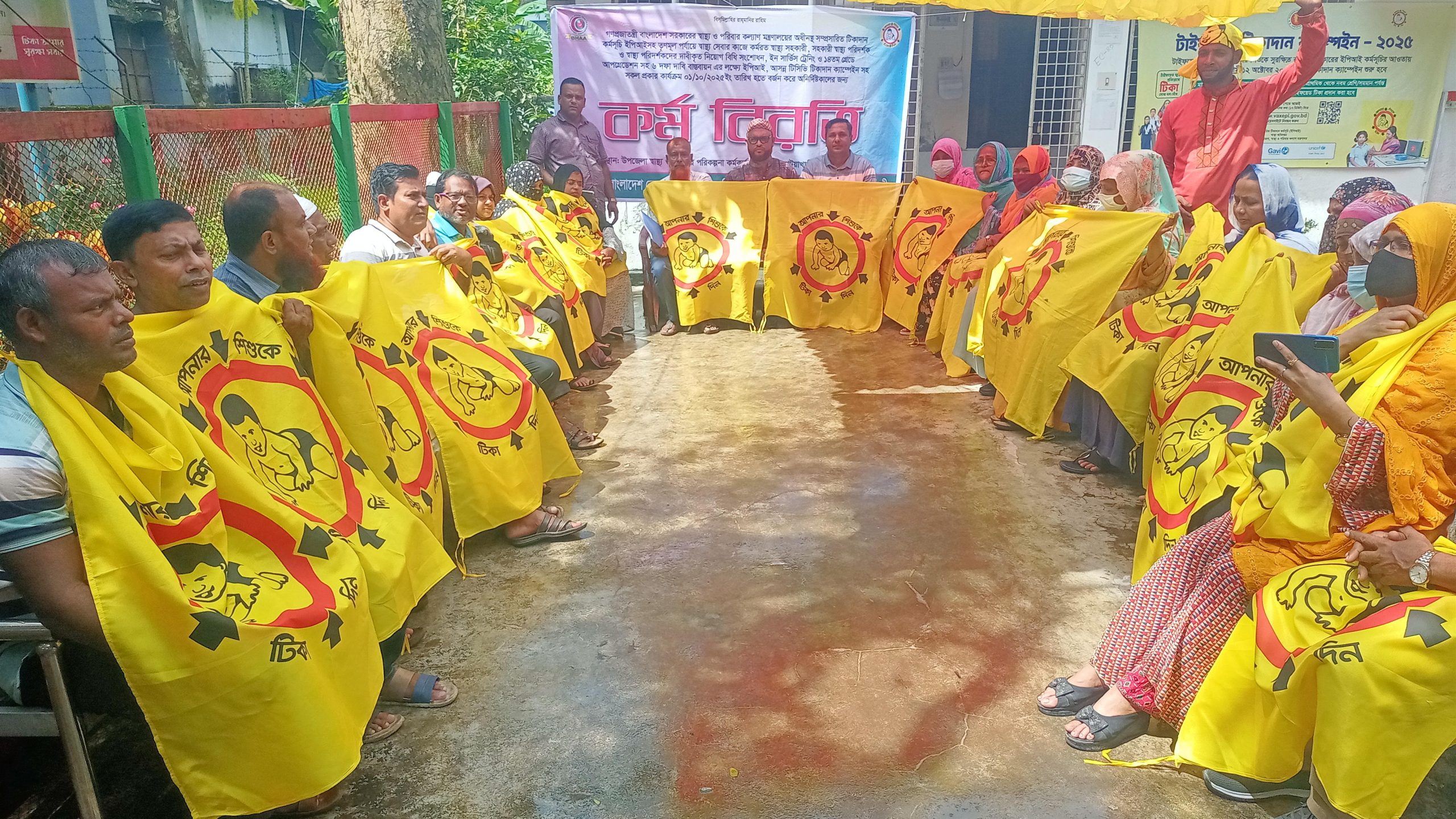 জালাল আহমেদ: গণপ্রজাতন্ত্রী বাংলাদেশ সরকারের স্বাস্থ্য ও পরিবার কল্যান মন্ত্রনালয়ের অধীনস্থ সম্প্রসারিত টিকাদান কর্মসূচী ইপিআইসহ তৃণমূল পর্যায়ে স্বাস্থ্য সেবার কাজে কর্মরত স্বাস্থ্য সহকারী, সহকারী স্বাস্থ পরিদর্শক ও স্বাস্থ্য পরিদর্শকদের দাবীকৃত নিয়োগবিধি সংশোধন, ইন সার্ভিস ট্রেনিং ও ১৪ তম গ্রেডে আপগ্রেডেশনসহ ৬ দফা দাবী বাস্তবায়নের লক্ষ্যে ইপিআই, আসন্ন টিসিভি টিকাদান ক্যাম্পেইনসহ সকল প্রকার কার্যক্রম বর্জন করে অনির্দিষ্টকালের জন্য কর্মবিরতি পালন কর্মসূচী চলছে।