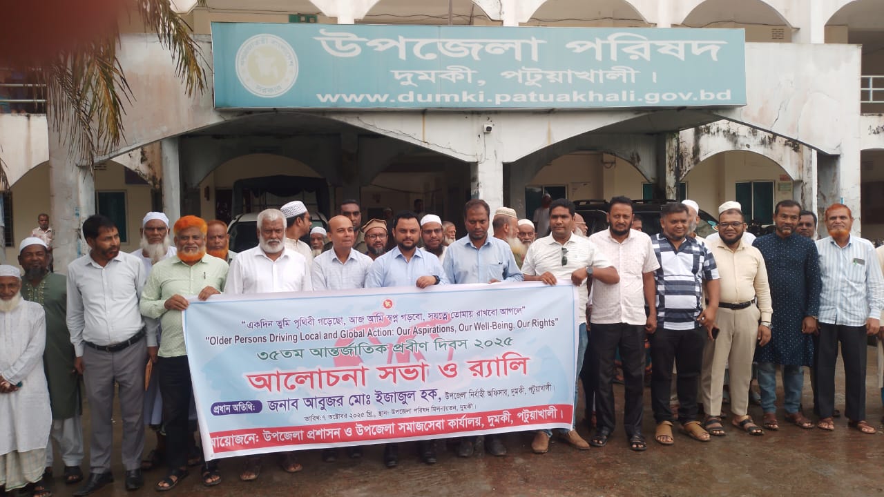 দুমকি প্রতিনিধি: দুমকিতে যথাযোগ্য মর্যাদা ও উৎসাহ-উদ্দীপনার মধ্য দিয়ে ৩৫তম প্রবীণ দিবস উদযাপিত হয়েছে। এ উপলক্ষে উপজেলা প্রশাসন ও উপজেলা সমাজসেবা কার্যালয়ের যৌথ উদ্যোগে এক বর্ণাঢ্য র্যালি এবং আলোচনা সভা অনুষ্ঠিত হয়।